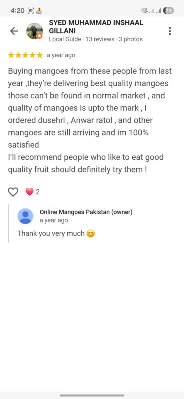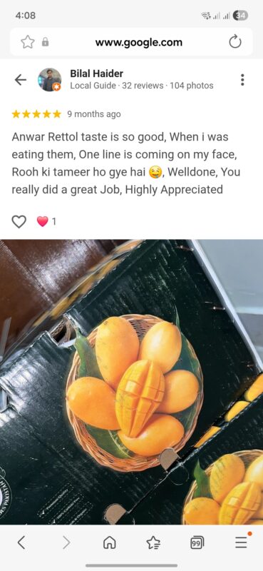 “Just got my hands on the most mouthwatering mangos from this company, and I’m still drooling over them! The taste was absolutely divine, the smell was irresistible, and the quality was top-notch. Packaging was flawless, too!📦👌Highly recommend!