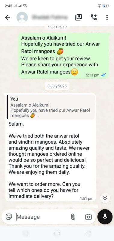 We’ve tried both the anwar ratol and sindhri mangoes. Absolutely amazing quality and taste. We never thought mangoes ordered online would be so perfect and delicious! Thank you for the amazing quality.